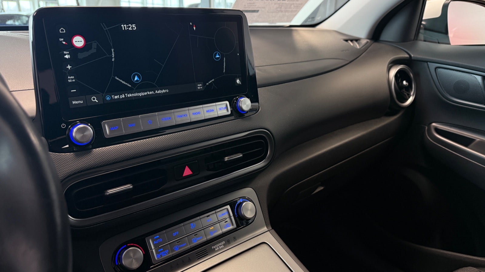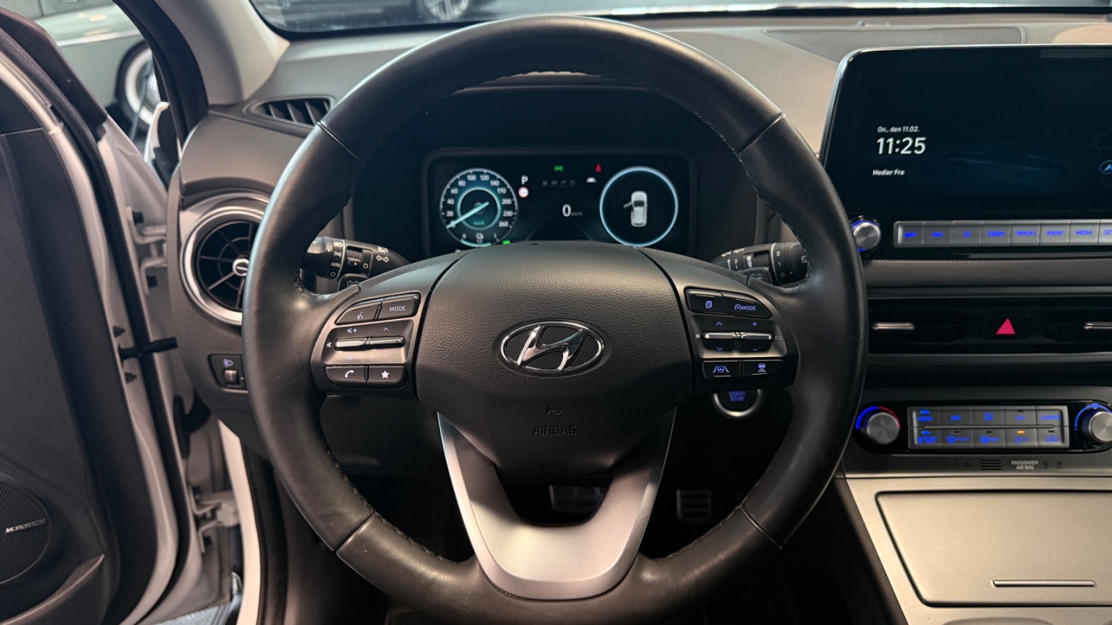 Super fin Kona 64 - suveræn rækkevidde. Bilen er med bl.a Bluelink ( App til bl.a ladestyring og forvarmning af kabine ) samt 3 faset ladning og varmepumpe.
