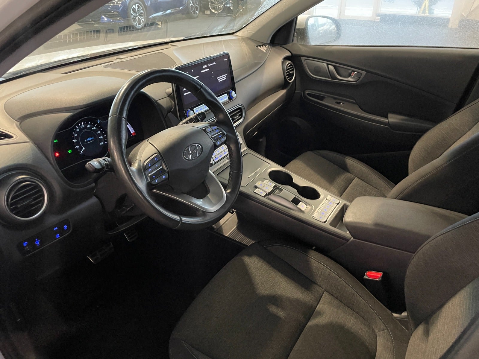 Super fin Kona 64, bilen er med 3 faset ladning samt Bluelink til bl.a forvarmning af kabine og KRELL lydsystem med lille subwoofer.
