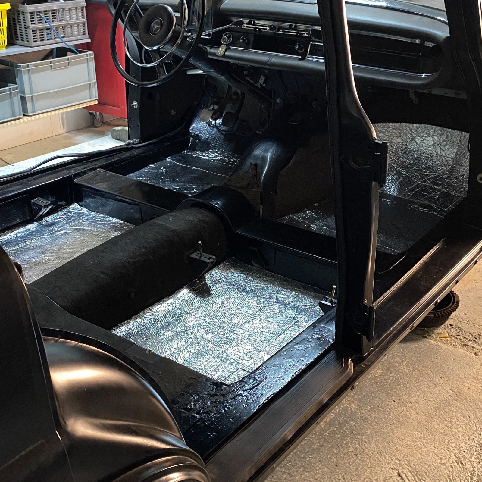 Hele bunden indeni, ryggen på bagsæde og baggagerum har fået blygummi og lydisolering.