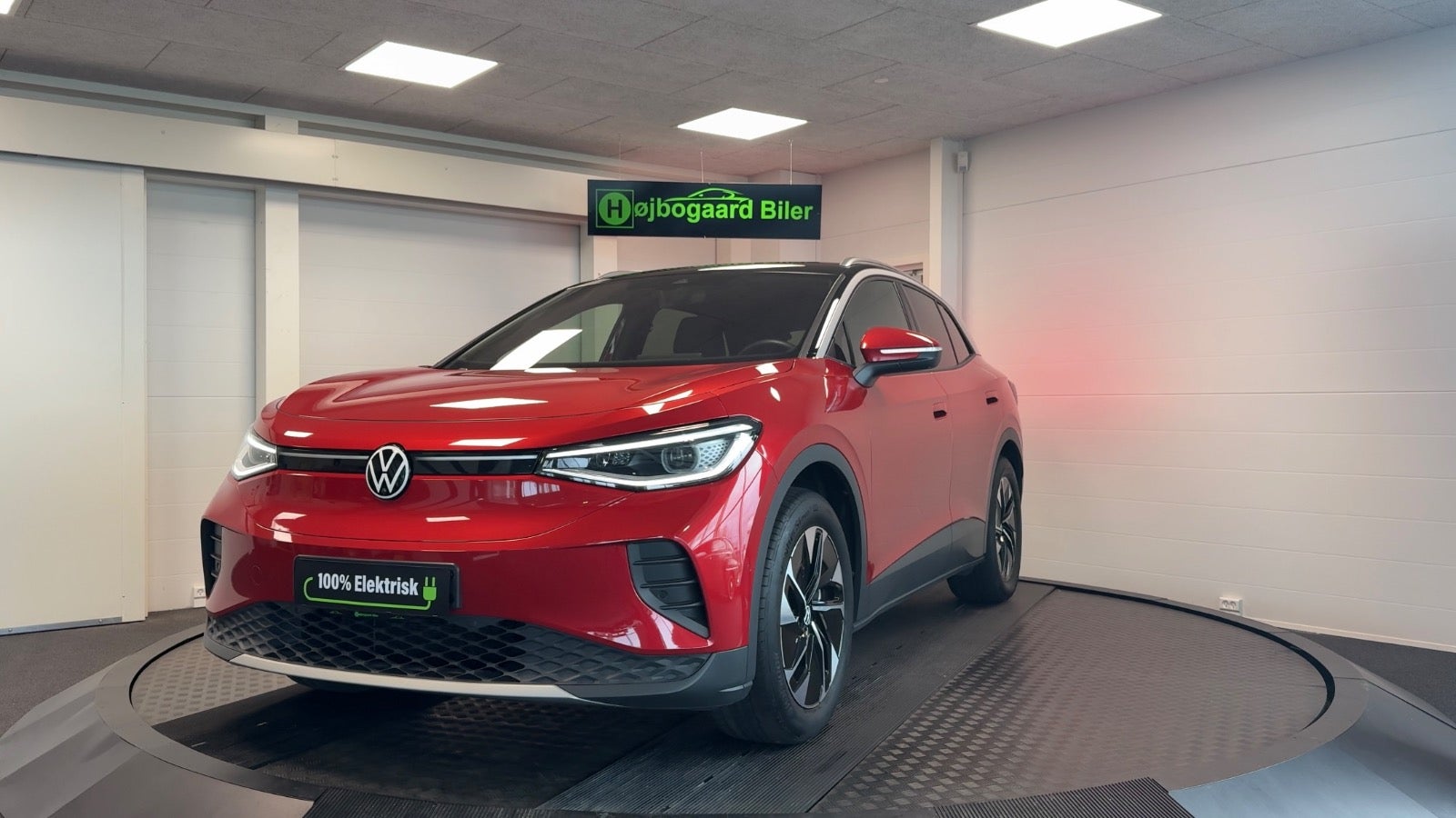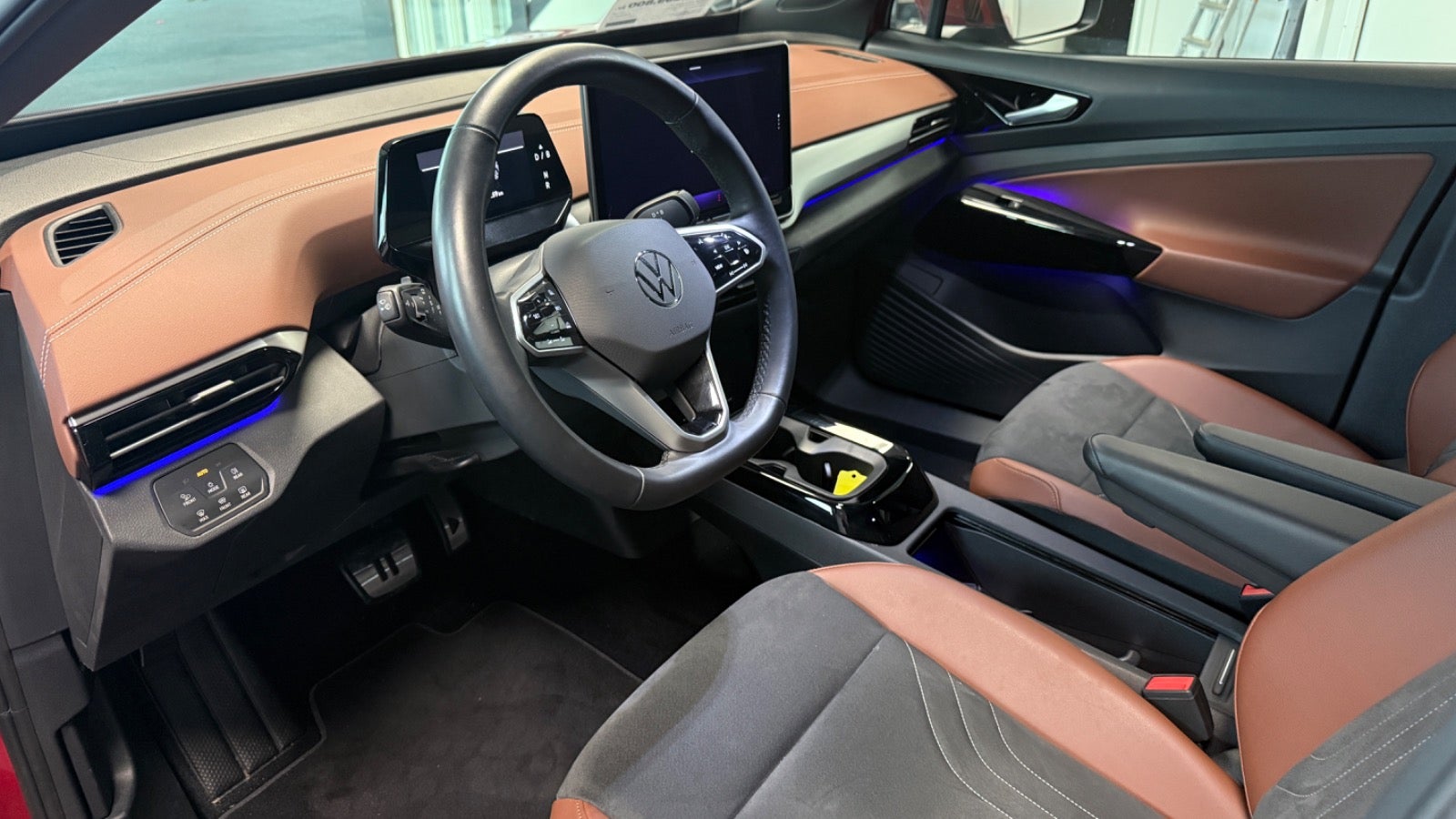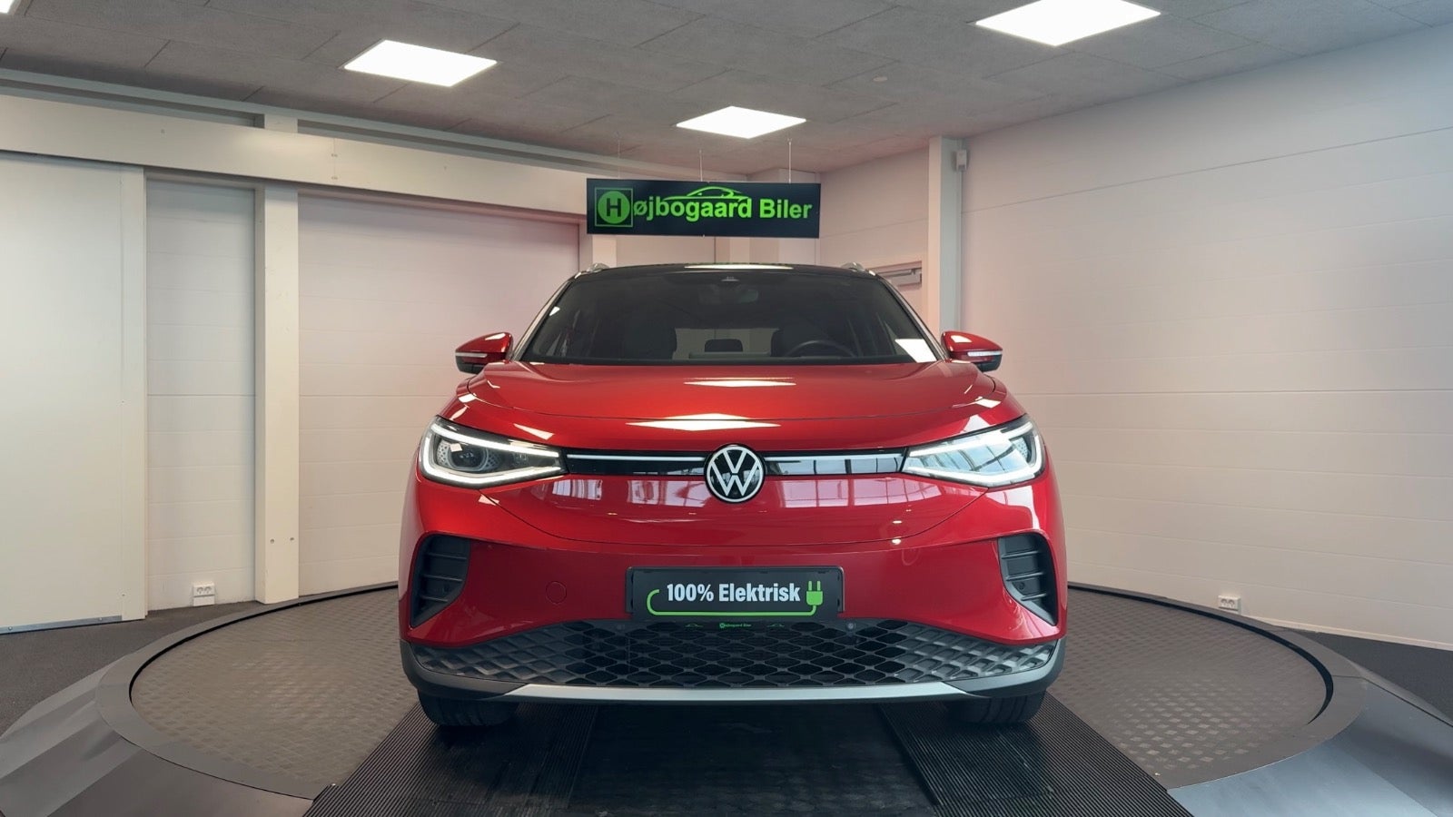 Veludstyret ID.4 i den super flotte ´ Kings red ´ farve og matchende dellæderkabine i grå/brun læder og med bl.a 360 kamera, el-bagklap, matrixlys, Travelassist mm. Mulighed for opkobling med app til bl.a forvarmning af kabine.