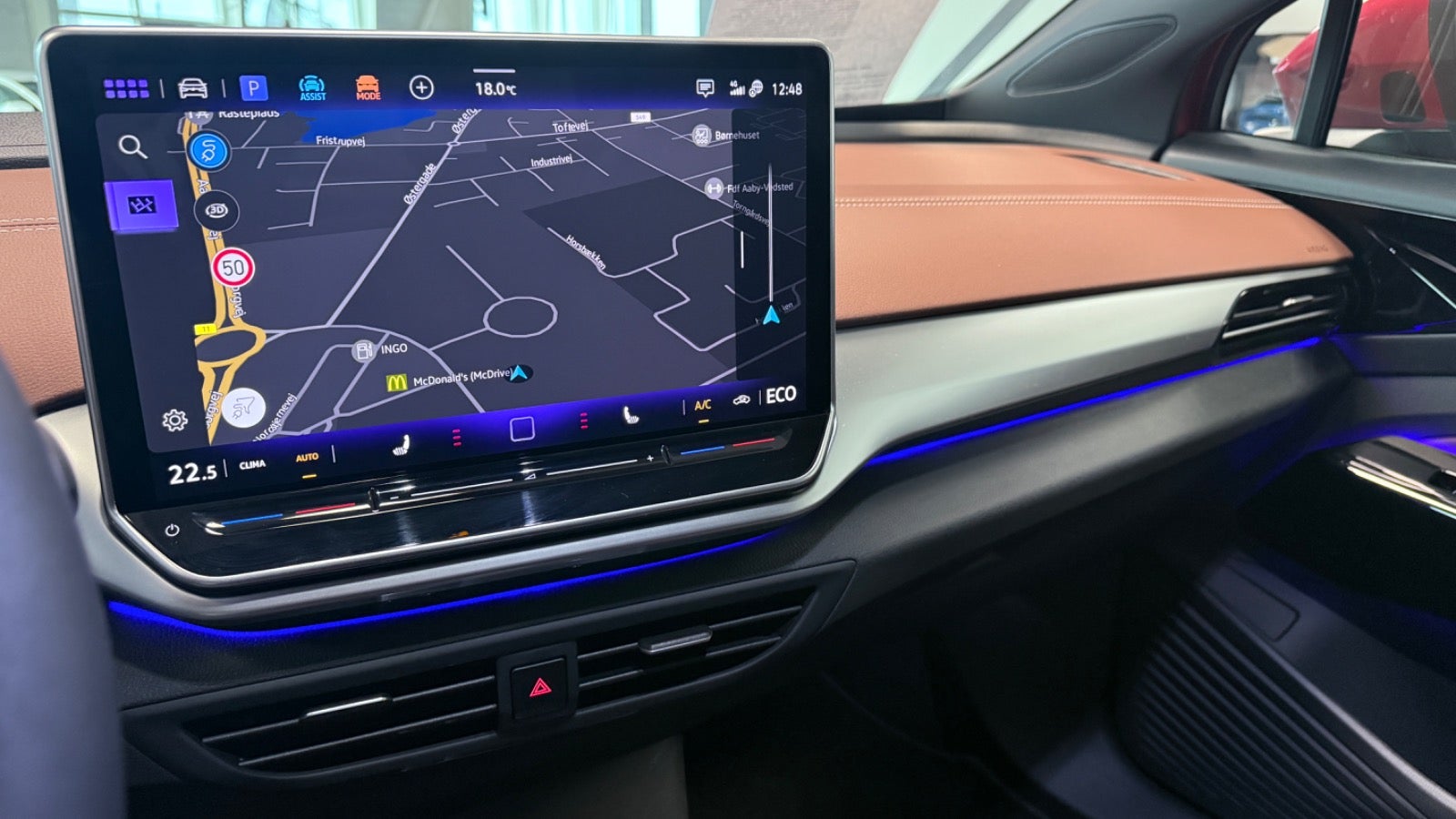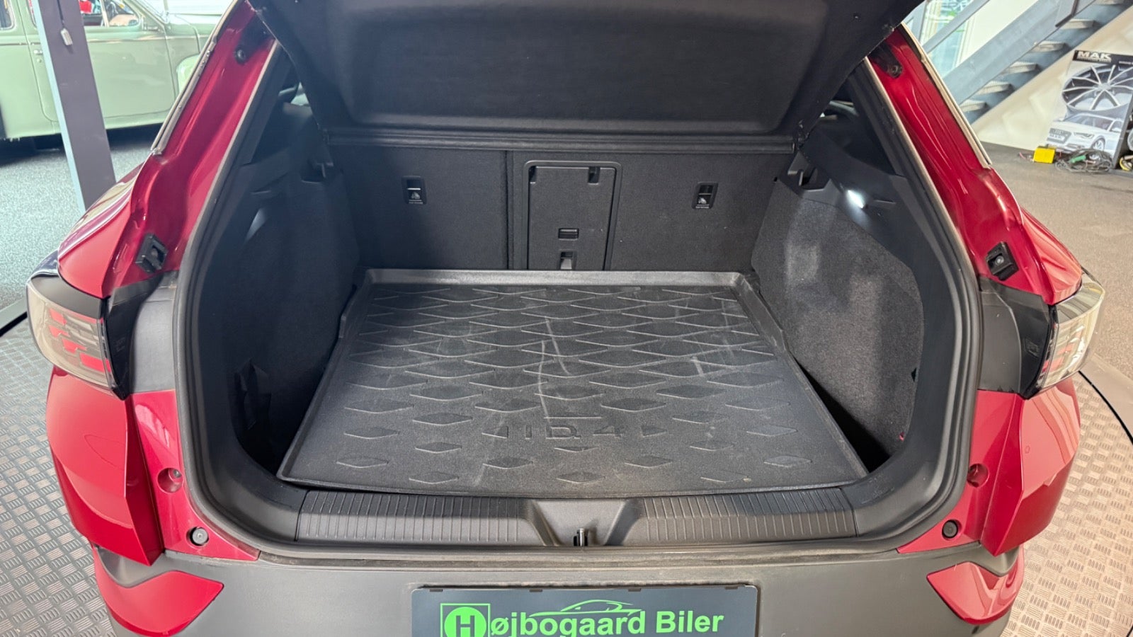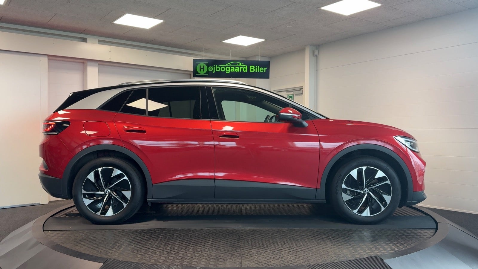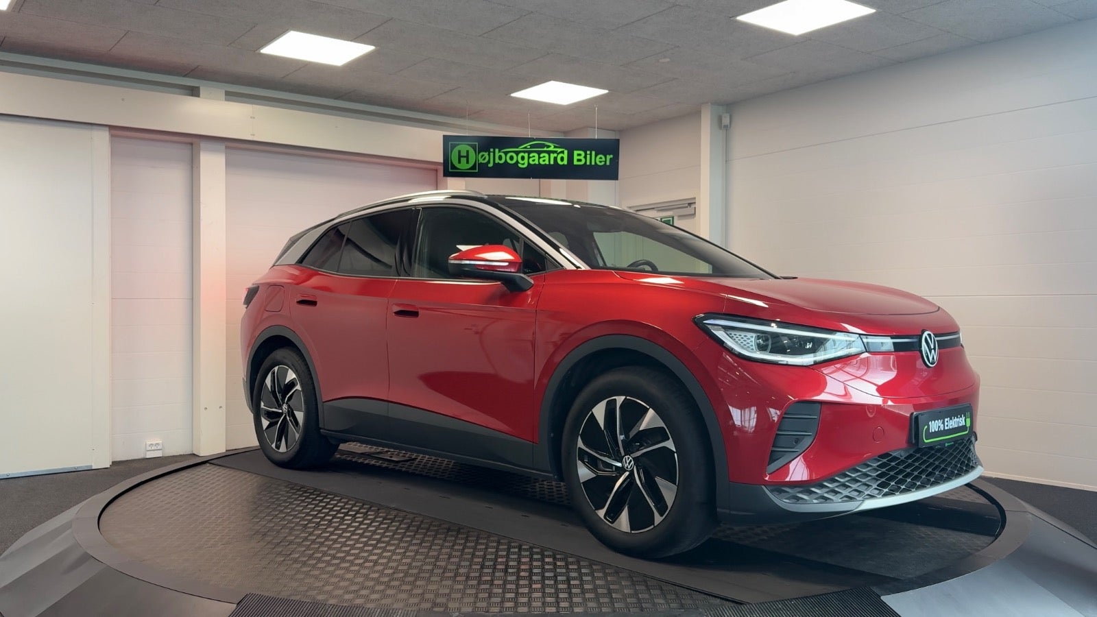 Veludstyret ID.4 i den super flotte ´ Kings red ´ farve og matchende dellæderkabine i grå/brun læder og med bl.a 360 kamera, el-bagklap, matrixlys, Travelassist mm. Mulighed for opkobling med app til bl.a forvarmning af kabine.